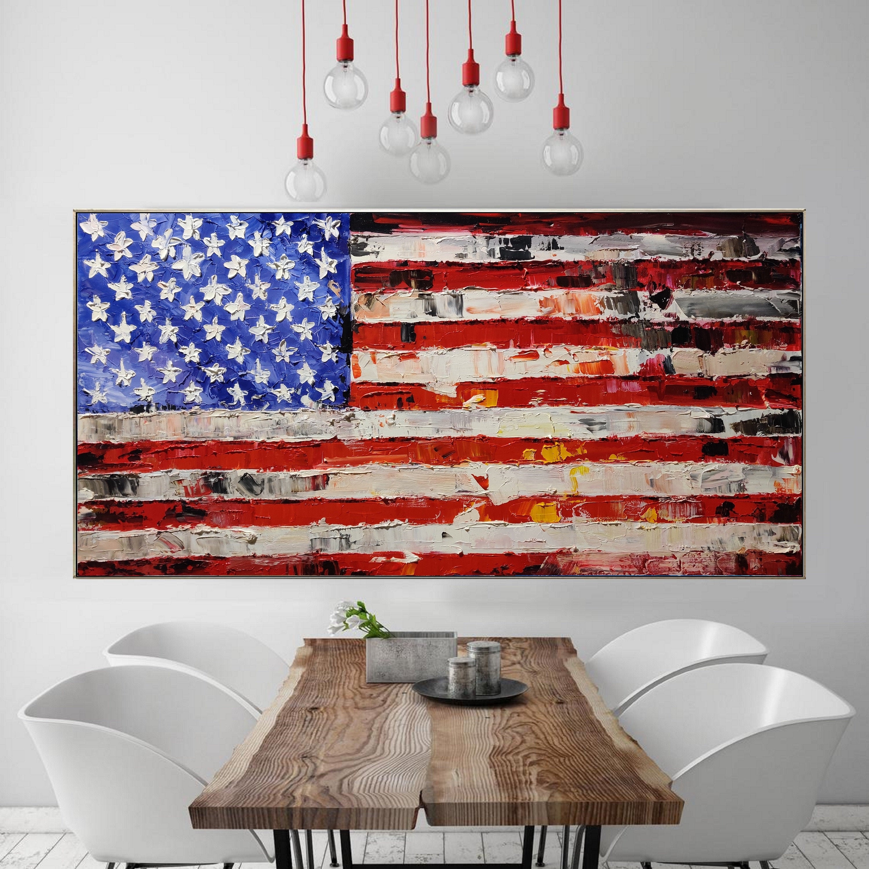 Canvas Painting Picture American Flag Paper Dimensional Collage Decora Art Street